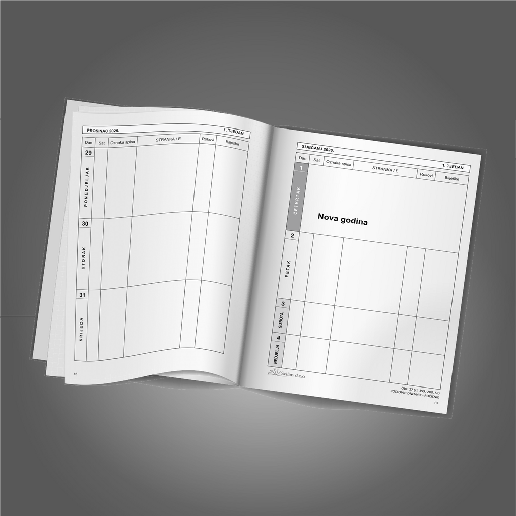 Odvjetnički ročišnik/Poslovni dnevnik jednogodišnji 2025. (A5)