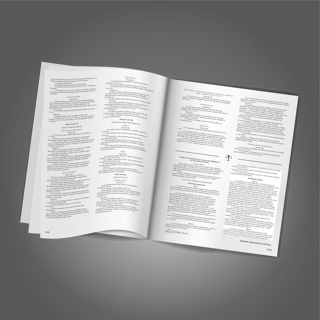 - Tarife (Tarifa sudskih pristojbi, Tarifa o naknadama i naknadi troškova za rad odvjetnika)
